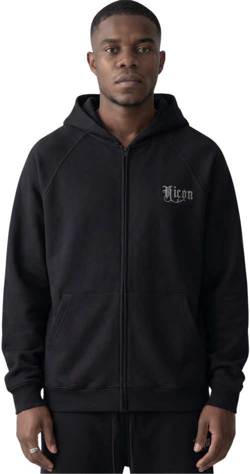 Oversized full-zip hoodie crafted from a heavyweight cotton blend, featuring a washed finish and subtle distressed detailing for a raw, grunge-inspired streetwear look. Designed for bold layering with a worn-in, vintage feel.